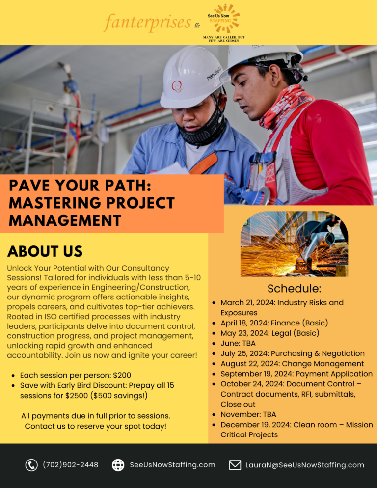 Are you ready to unlock the key to success in project management? Look no further than our Mastering Project Management Sessions! Tailored for individuals with less than 5-10 years of experience in Engineering/Construction, our dynamic program is designed to propel your career to new heights.